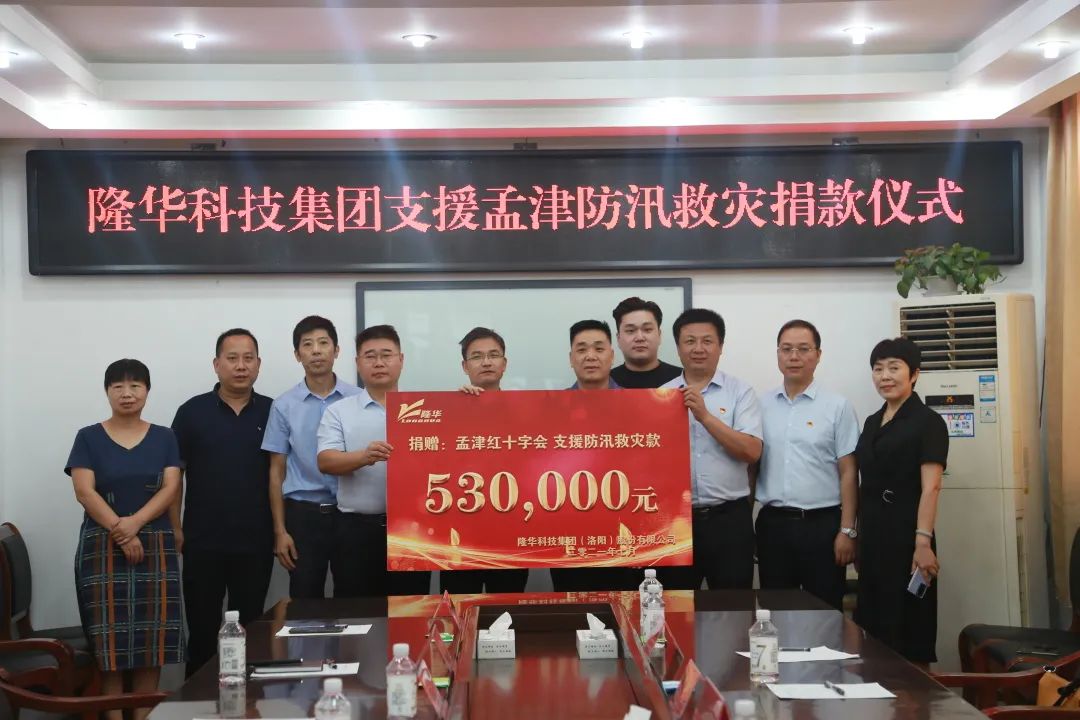 隆華集團攜各子公司共同募捐了善款100余萬元,其中全體員工募捐342701元。截止目前,集團已向新鄉紅十字會捐款50萬元,向孟津縣紅十字會捐款53萬元。